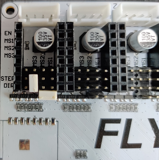 - Place stepper drivers for X, Y, E, Z, Z1, Z2, and Z3 in positions X, Y, E0, E2, E3, E4, E5