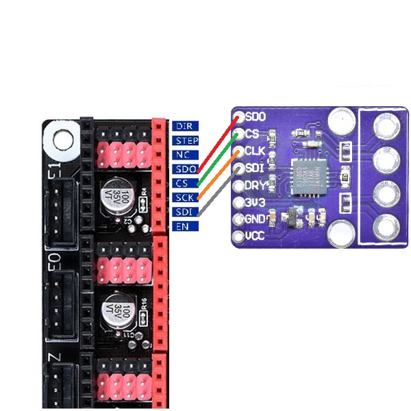 Connect the SPI pins to the E1 Stepstick Slot: