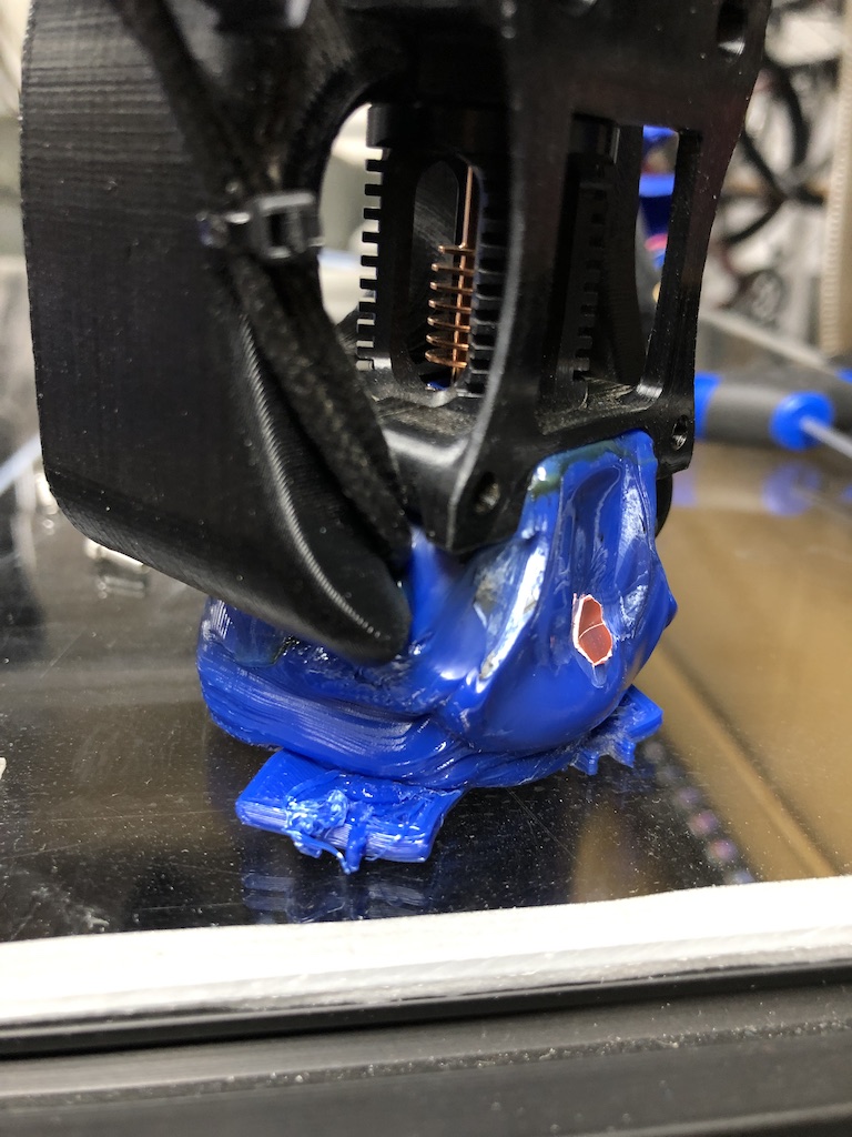 4. With some solid steel or copper wire, suspend what is left of the toolhead by the hot end itself from the lid of the container.